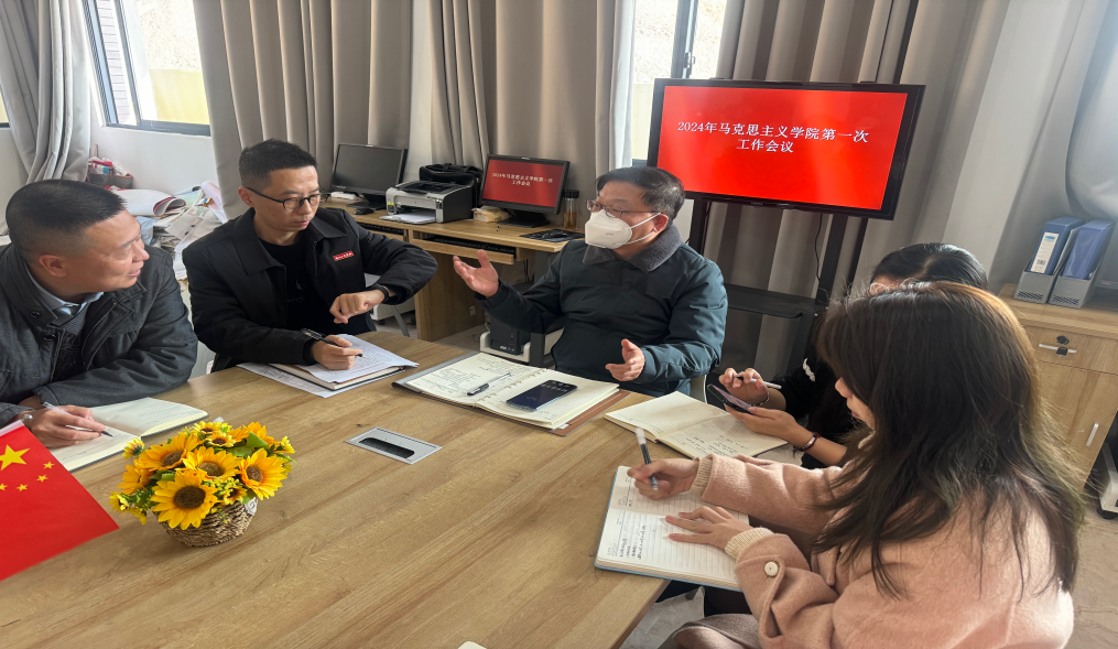 在向全体教师致以新年良好祝愿后。林涛院长首先组织全体教师认真学习了教育部《新时代高校思想政治理论课教师行为规范和准则》,“心有大我,坚定政治立场;至诚报国、筑牢理想信念”等十二条主要行为规范和准则,涵盖行为世范的教师规范、言为士则的道德标准、因材施教的教学方法等等,内容丰富具体,富有时代精神和明确的指导意义,为我院教师今后师德师风、教书育人、教学科研等指明了方向。林涛院长结合学习内容,特别作了三个方面的强调;一是要强化自我要求,不断提高师德师风水平。指出教书育人是一名教师的崇高职责和使命,学高为师、德高为范,思政教师不仅要做学生增长知识的引路人,更要做学生思想进步和身心健康成长的导师;二是要强化自我学习,不断提高综合素养。指出教师不仅是教育者,同时还必须是学习者,要牢固树立终身学习观念,现在科技发展日新月异,马克思主义学科也在与时俱进,习近平新时代中国特色社会主义思想作为一个体系内容非常丰富,仅现有的强军思想、经济思想、法治思想、外交思想、生态文明思想和文化思想六大分领域思想就值得我们深入学习和研究,因此要不断学习、充电、再学习、再充电,只要这样才能胜任岗位需要。三是要强化责任意识,不断提高使命担当的自觉性。指出思想政治理论课教师担负着学生成长引路人和导师这一重要角色,理应比其他教师有更高的觉悟和更高的要求,因此,一定要认清自己肩上的担子,做到全员育人、全过程育人、全方位育人,切实落实立德树人根本任务。大家也纷纷表示作为一名高校思想政治理论课教师一定要切实按照《新时代高校思想政治理论课教师行为规范和准则》严格要求自己,努力做一名思想强、情怀深、思维新、视野广、自律严、人格正好老师!