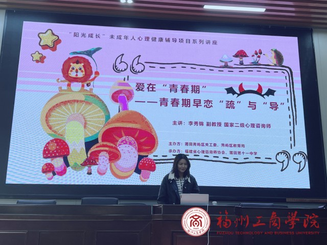 李秀锦老师分别以《生命与死亡的思考——让生命之花绽放光彩》、《爱在“青春期”——青春期早恋“疏”与“导”》为题,向东湖中学初中学生和莆田第十一中学高中生讲授了对生命与死亡的思考和青春期“早恋”的疏导等相关问题。李老师通过丰富的视频、精彩的案例、多样的互动形式,让中学生进一步了解生命与死亡的关系,积极探索向死而生的生存意义以及了解早恋的原因,早恋的特点,早恋的利与弊,如何避免早恋,失恋后应该如何处理等问题。勉励同学们“比起年少的欢喜,我更向往白头偕老的爱情,寻求自我价值的实现,我们才有底气去匹配优秀的爱人!”