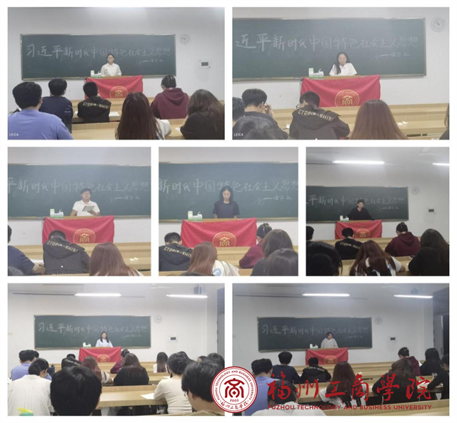 读书社成员依次上台分享个人对于“习近平新时代中国特色社会主义思想”的思考与体会。其中,成员讲到了习近平总书记提出的“两山”理论、“八个明确”、“十四个坚持”等重要理论指导。