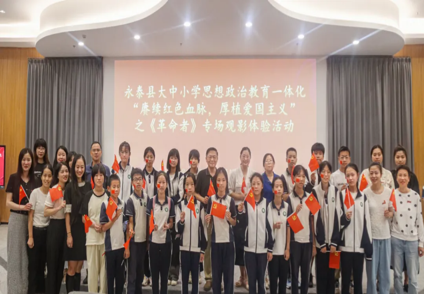 学院在创新楼报告大厅举行“大思政观影课”活动。为了进一步推进永泰县大中小学思政课一体化建设并取得更好育人效果,活动特别邀请永泰县葛岭中学和永泰县葛岭中心小学学生与我校各二级学院学生代表、习近平新时代中国特色社会主义思想读书社成员约400人共同观看《革命者》红色电影,庆祝中华人民共和国成立75周年并接受革命传统教育。