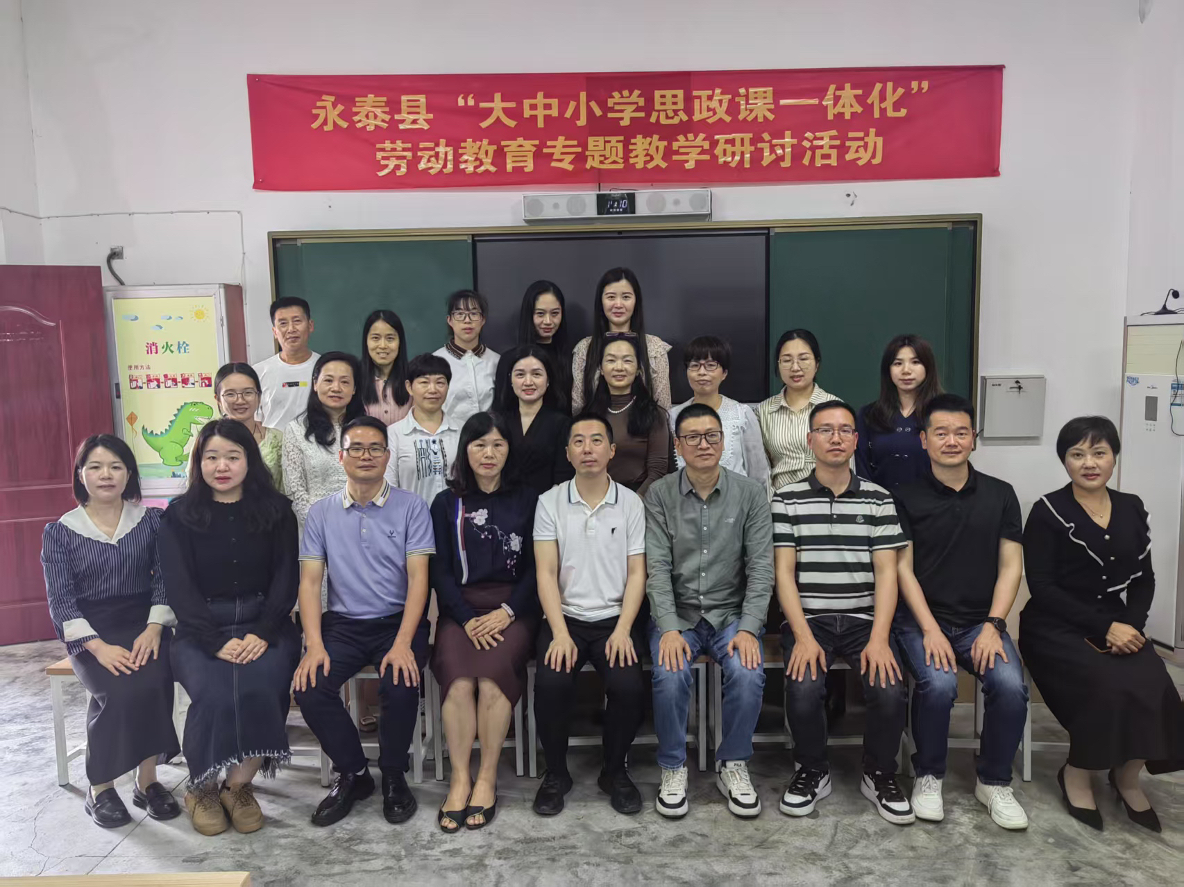 2025 年 4 月 29 日下午,“大中小学思政课一体化”劳动教育专题教学研讨活动在永泰埔埕学校举办。此次活动由永泰县教育局主办,永泰县教师进修学校、埔埕学校和yl23411永利集团承办。永泰县教育局党组成员陈燕雪副局长,德育科温志成科长,福州工商学校雷竞副院长,永泰县教师进修学校蔡群副校长,永泰一中魏黎明副书记、埔埕学校部分教师以及yl23411永利集团骨干教师出席。