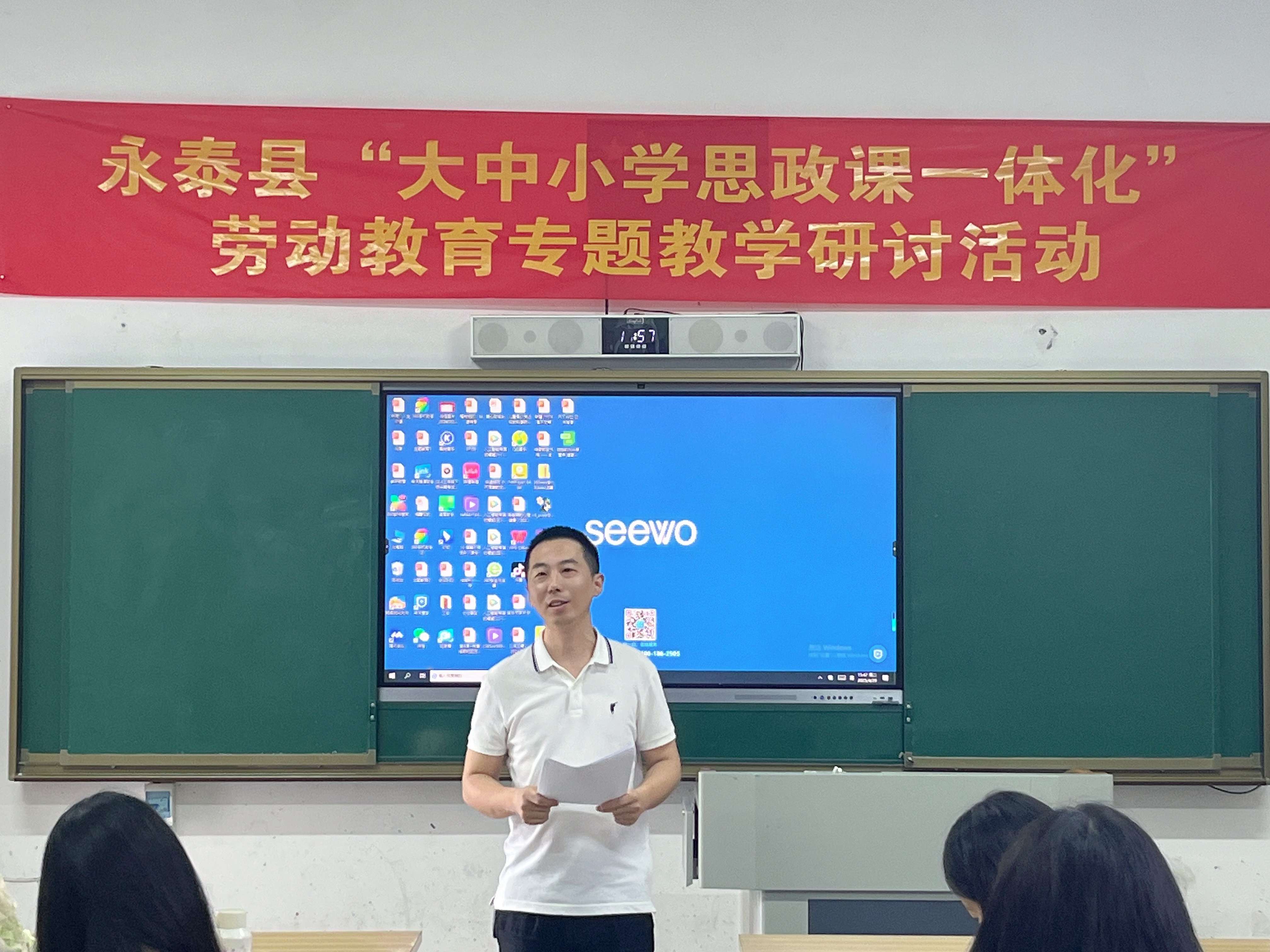 最后,教学评议环节,永泰一中魏黎明副书记评议:此次“大中小学思政课一体化”劳动教育专题教学研讨,是贯彻习总书记在全国教育大会提出的”加快构建德智体美劳全面培养的教育体系”的一路径。三位教师围绕劳动教育同课异构,形成螺旋上升的育人体系,都是有高度、有温度、有深度的课堂!最重要的是培养了学生的劳动价值观,系好人生的第一粒扣子,让学生学会崇尚劳动、热外劳动、尊重劳动。
