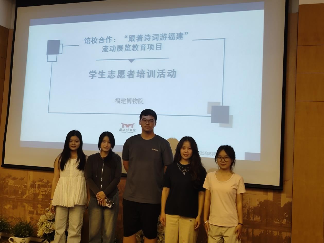 在5.18国际博物馆日即将来临之际,福建博物院启动了馆校合作项目——“跟着诗词游福建”流动展览教育项目,福州市各大中小学积极报名参加。5月10日,我校5名学生参加了福建博物院举办的学生志愿者培训活动。